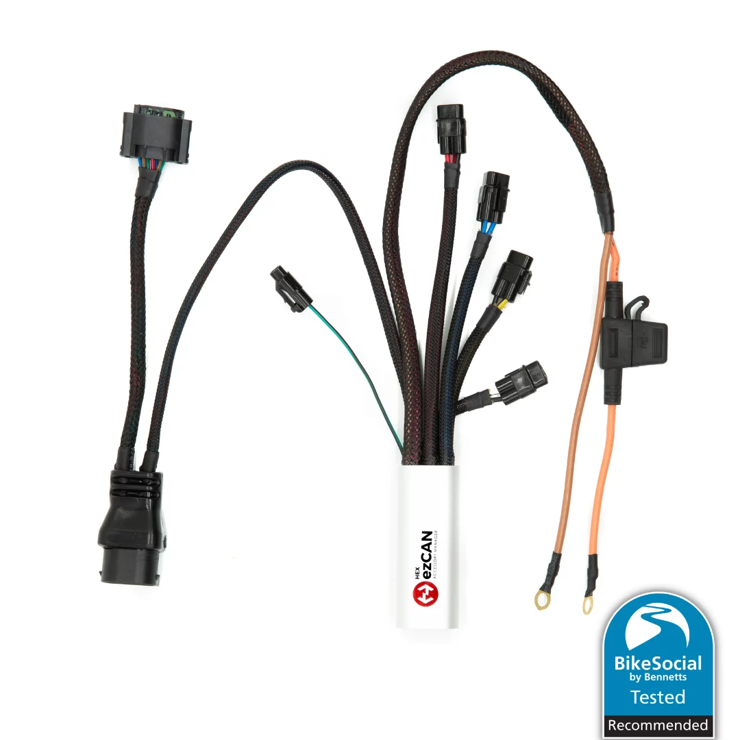 Menedżer akcesoriów HEX ezCAN pozwala na dodawanie i konfigurowanie dodatkowych akcesoriów bez naruszania fabrycznej instalacji motocykla i przecinania jego przewodów. Szybko i prosto można zamontować dodatkowe światła, klakson pneumatyczny czy ostrzegawcze światło stopu, które sprawiają, że jazda motocyklem staje się jeszcze bardziej bezpieczna.